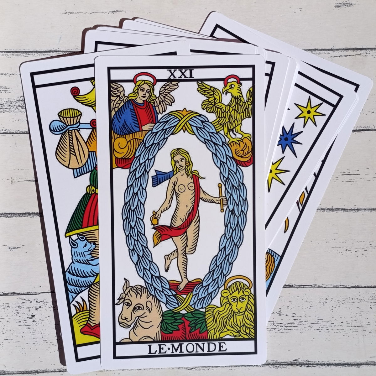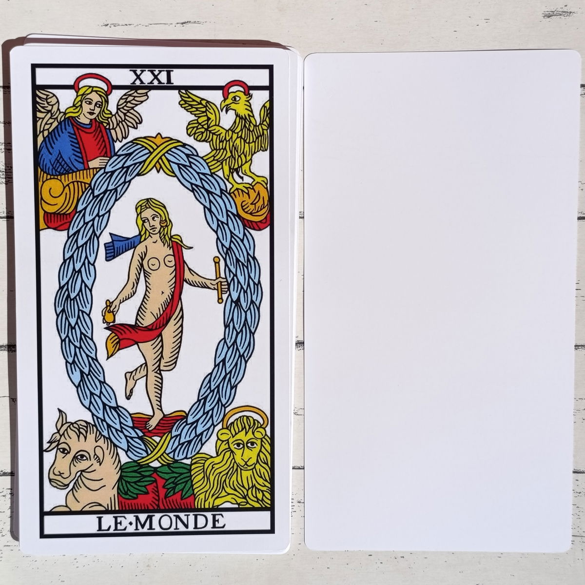 Este Mazo Grande de Papisas está diseñado para la enseñanza de Tarot Marsella. Contiene los 22 Arcanos Mayores.