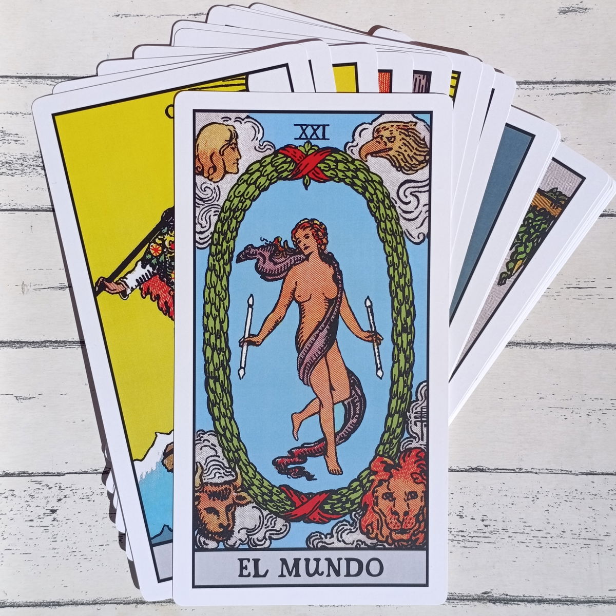 Este Mazo Grande de Papisas está diseñado para la enseñanza de Tarot Rider . Contiene los 22 Arcanos Mayores.