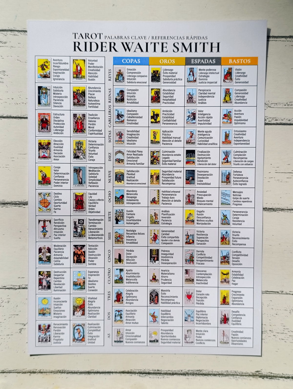 De regalo un afiche A4 con los 78 Arcanos y palabras claves.